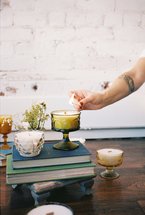 Non-toxic, hand-poured candles in repurposed, antique and vintage vessels.